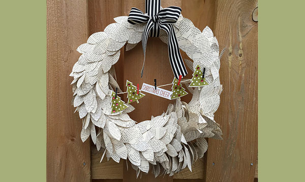While the paper leaves on the wreath base don’t change from season to season, the decorations in the center do, making this a project your family can work on all year long.