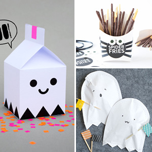 And speaking of ghosts, these printable ghost treat box containers by Minieco.co.uk also look a little too adorable to open. Create a fleet of the ghosts to take over a buffet table at a party or to present as a snack at school.