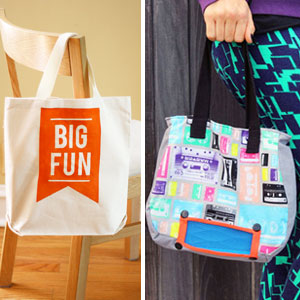 You can never have enough bags! When it comes to summer activities – heading off to day camp, long weekend visits to see family or a quick trip to the beach – you’ll need a fun bag to pack all your goodies in. You can make a bag from scratch or add your own creative touches to a plain, ready-to-decorate tote found at the craft store in the clothing aisle. Check out this week’s Make It roundup for some bagable inspiration.