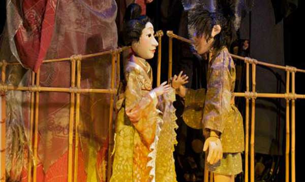 The tale explores the impact of good and bad decisions through the story of a young man who rescues a crane and is rewarded but must resist the temptation to betray his crane-turned-wife’s trust. The “actors” onstage are puppets handled by two puppeteers outfitted in traditional Japanese costumes and masks.