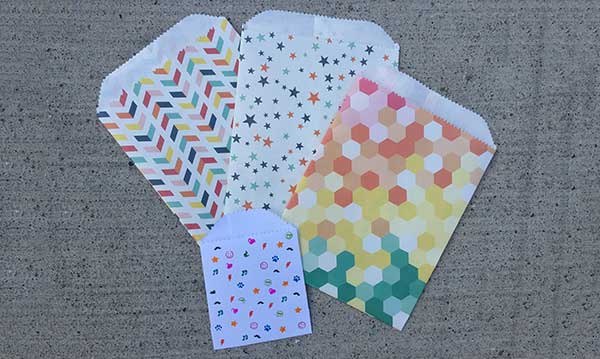 Have fun adding stamps, doodles, washi tape and stickers. Crayola’s Expression Stamper Marker set is a great throwback to 1980s stamps; have your child try adding them to their DIY goody bag!