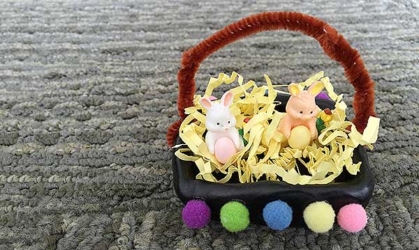 Think back to art class during your elementary school years. For many of us, the first time we were introduced to working with clay it was by way of making a pinch pot. It wasn’t the most perfect looking home accessory, but the pinch-and-turn approach to making something with clay is what tends to get most young craft-lovers hooked on the medium! If your child hasn’t tried their hand at a pinch pot yet, here’s an activity that will do just the thing. By making a mini pinched Easter basket, they’ll be ready for a certain well-known bunny’s arrival, too.