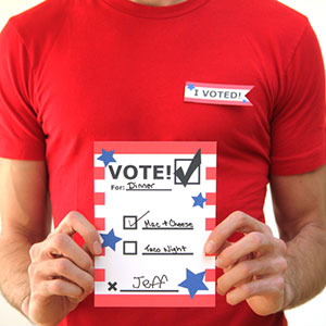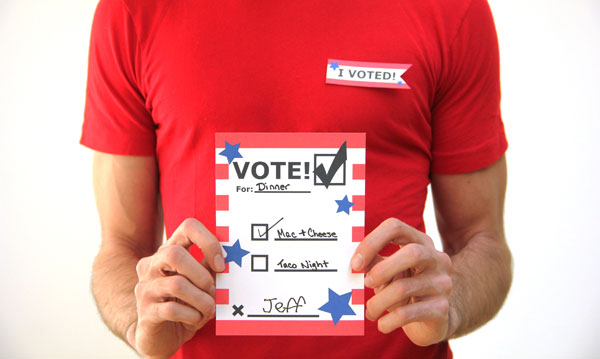 Voting doesn’t always have to be about top offices. Take a cue from Studio DIY and vote for what’s on the dinner table tonight with these printable ballots.