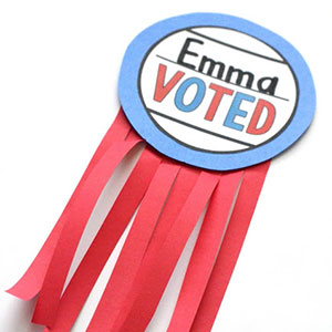 The Lemonade Stand pulled together her favorite resources for Presidents’ Day activities at school, but many of the ideas are perfect for Election Day. A favorite? A patriotic voter badge.