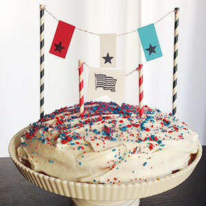 Hip, hip, hooray! Tomorrow is the Fourth of July, and for many of us, that means a day dedicated to picnics, barbecues and outings to the beach – and an evening filled with fireworks and sparklers. Whether you’re visiting family and friends or staying closer to home, you can create a last-minute patriotic themed DIY project that will be the envy of your guests. All you need to do is to supply your favorite cake and enjoy the day!