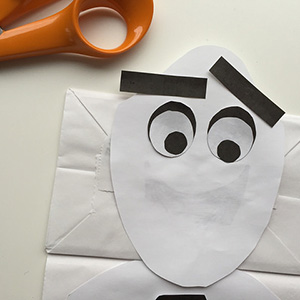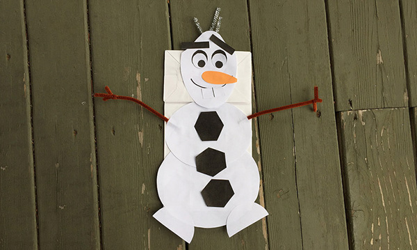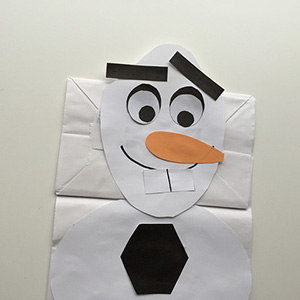 Do you want to build a snowman? If your child loves Frozen, I’m sure you’ve heard those words sung many, MANY times in your home since the movie came out back in 2013. But with the lack of snow during this past holiday season, there weren’t many opportunities for snow-related building activities outside, were there? Not to worry! To make up for the lack of snow play, your child can make an Olaf-inspired paper bag puppet. With the help of some printable shapes to cut out and paste, your child can make a snowman puppet as a way to welcome January.