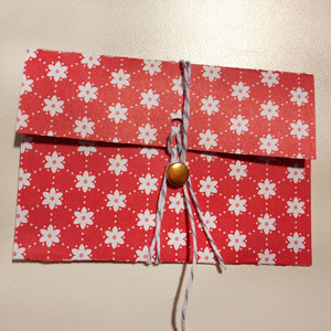 4. To close the pouch, wind the string around the envelope and wrap around the brad – the brad will act like an interoffice envelope closure.
