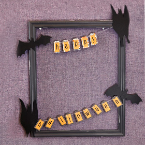 - Add the banners to the bottom and top of your frame by applying a generous dollop of hot glue to the sides of the frame and placing the baker's twine into the glue. Let it dry. To cover glue marks, add a Halloween decoration like bat cutouts or spider webs. Check your local craft store's seasonal stock for lots of options!