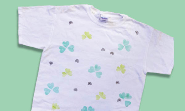 If you look closely at a shamrock, what shape jumps out? A heart, right? When it comes to St. Patrick’s Day crafts, that simple shape is all it takes. Test this technique by stamping hearts in sets of three (maybe four, if you’re feeling lucky). For your first project, stamp a plain T-shirt to have ready in time for March 17.