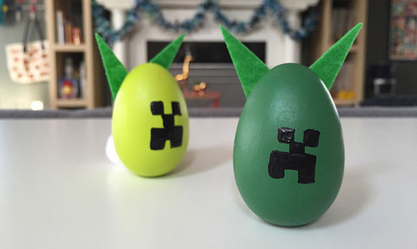 Just about any character is possible (take a look at these Minions eggs!), but this time around I’m focusing on a beloved franchise in our family: Minecraft. Specifically? Creepers. Take a look.