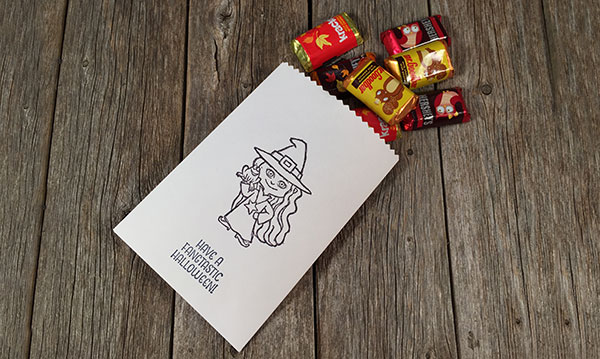 When it comes to Halloween night, do your neighbors do anything extra special for your children as they head out to trick-or-treat? In my neighborhood growing up our closest neighbors often surprised us with homemade cupcakes or even a small bag of assorted candies. While it’s rare to see baked goods handed out these days, putting together a small bag of candy or non-food treats is still a lot of fun to make and give out. A small bag of surprises is also fun for children to present to a best friend or present to everyone in their classroom.