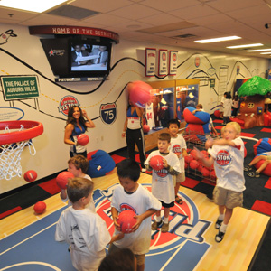 Highlighting some of the city's memorable spots, the center lets kids climb into a toddler tree house that represents the parks of Detroit, scamper through a crawl space to cross from Detroit to Canada and tour the Detroit skyline – all the way to the Palace of Auburn Hills and more! And the Palace Hall of Fame, funded by our own Detroit Pistons and PNC Bank, lets kids shoot some hoops on the Pistons-themed basketball court.
