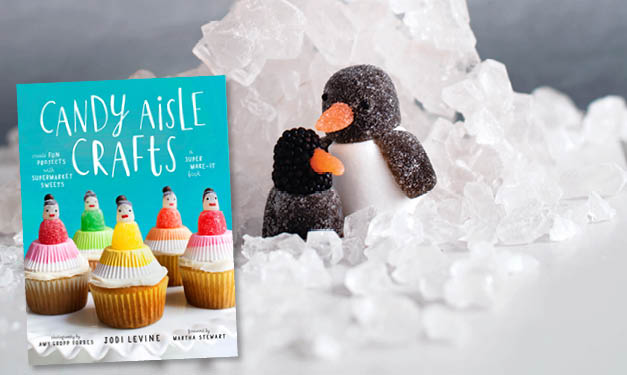 That's the idea behind Candy Aisle Crafts: Create Fun Projects with Supermarket Sweets, published by Potter Craft, a division of Penguin Random House, LLC. It's the brainchild of writer/crafter Jodi Levine, a Brooklyn mom of two young boys. Her sweet tooth for turning goodies into buoyantly colorful, totally edible projects is addictive – whether it's melting peppermints into festive "tree pops" or snipping gumdrops for a "gummy animal menorah." Her projects span themes and celebrations, all beautifully photographed by Amy Gropp Forbes.