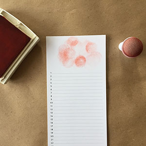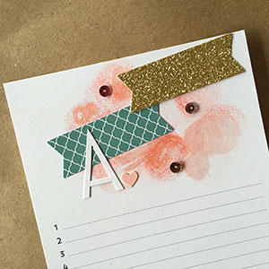 The personalization of the pages is up to you, but Stampin’ Up! does give you a few idea starters to get you going. You can stamp, doodle or add stickers to the top of the page; there are a handful of paper bits in the kit to add to the page. I used a stamp dauber and a favorite ink pad to create a smudged effect on the top of this calendar page for August.