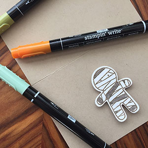 Stampin’ Up! has long been a go-to source of mine for finding charming scrapbook and stamping supplies that appeal to crafters of all ages. This year they released an adorable gingerbread-themed shaped paper punch that is the building block for several different holiday stamps, including Halloween.