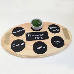 Happy Passover! If you’re celebrating with family this week, you’ve likely prepared one – or all – of the six traditional Passover foods, which include charoset, hard-boiled egg, roasted lamb or goat shankbone, karpas, chazeret and maror. To make something extra special with the kids to celebrate the holiday this year, try creating this Passover Seder platter – along with a chalkboard plate than can be used over and over again. The Make It blog shows you how to make this platter, which has six spots for each of the traditional foods.