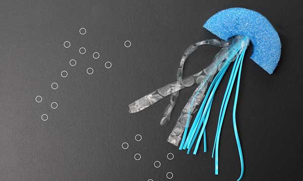 A few cuts with a trusty pair of scissors and you’ve got the base for a jellyfish! Not only does Mama Miss upcycle a noodle, she uses packaging materials, like bubble wrap, to complete this clever DIY.
