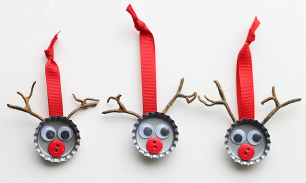 If you’ve got bottle caps lying around the house, you’ve got the makings for a bottle cap reindeer. The Country Chic Cottage upcycles these beverage accessories into a DIY that doubles as a Christmas ornament.