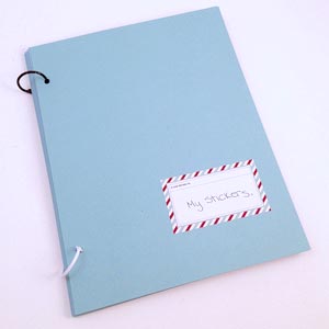 | 7. Add a blank piece of cardstock to the front and back of the portfolio to make covers. Kids can personalize it however they please. More stickers, perhaps? |