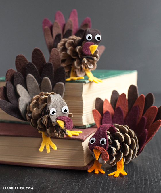 This project requires a trip outside to find some supplies! A pinecone serves as the turkey body base in this rustic project from Lia Griffith.