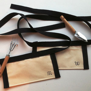 | 5. Cut two pieces of binding tape just slightly longer than the sides of the apron. Sandwich the apron into tape, folding over each end on the back. Sew into place. |