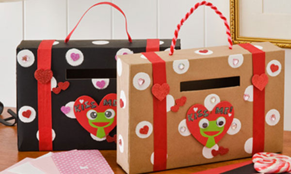 This Valentine holder is one that’s ready to hit the road! Plaid shows you how to convert an empty cereal box into a briefcase-style mailbox.