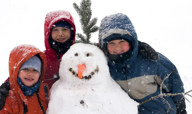 And consider crafting snow characters that go beyond the average carrot-and-coal variety. Kids might also enjoy building an upside-down snowman or a snow pup or cat. Many household supplies, such as old hats and dried pasta, can be used to give snowmen unique character.