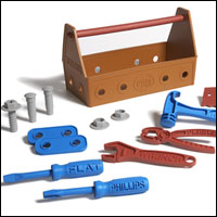 One of their newest toys is the Green Toys Tool Set, which is made entirely of recycled milk jugs that have been transformed into this nifty toolbox. In actuality, they've been upcycled, which is a method that converts plastic, glass and other materials into products that are of a higher quality.