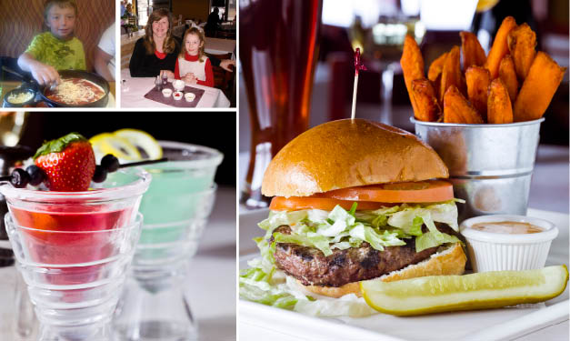 How’s that? Well, for starters, a “build-your-own” menu lets tykes stack up the sauces, pepperoni and cheese on their ‘pie’ however they please – pineapple, peppers and other toppings, too. Custom burgers also fit the bill.
