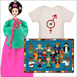 Now even baby can keep up with the times! Make a subtle-yet-bold statement with this organic cotton onesie – and teach the little crawler that gender will never hold him or her back. Available in long sleeve, too; sizes range from 3-6 months to 18-24 months. Runs $20 at CafePress.