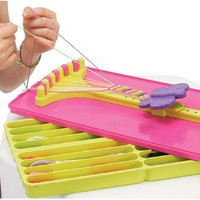 We gave it a test spin, and the clip really does fasten the looped end firmly – and the string holders are the perfect size to keep the loose strings in place during construction. Instructions on creating a few classic designs are included. Need a shorter bracelet? Just notch the butterfly clip down for optimal length.