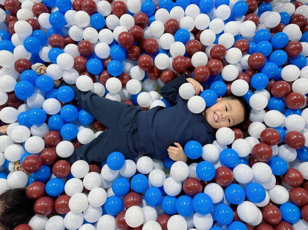 Every inch of this spacious play place is designed for safe and active fun. Lovers of sensory play will have a blast in the ball and bead pits. Plus, there’s a special bonus for truck lovers: the bead pit is filled with construction trucks, wheelbarrows and other sand toys that can be used to scoop and move the beads.Â
