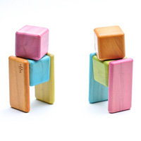 The upcoming "Tegu Tints" feature vibrant green, orange, turquoise, pink and yellow colors – a fun departure from the original standard wood tone (which are still available in the meantime). And, besides signature cube-shaped blocks, this 26-piece set has both long and short planks. We barely scratched the surface with our creations: Kids can put together loads of different models, make it prime for open-ended play.