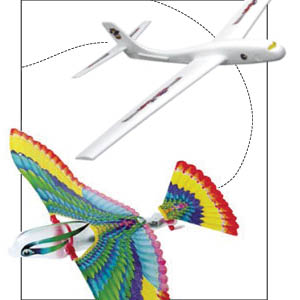 An ornithopter is an aircraft that flies by mimicking the flapping wing motion of birds or insects. While large-scale ones never took off, models are very popular – and a blast to fly. This colorful ornithopter is easy to use and, with its bright colors, simple to spot (in case it goes too far). Just wind up the rubber band mechanism and watch it soar. Get one on Edmund Scientifics for $14.95.