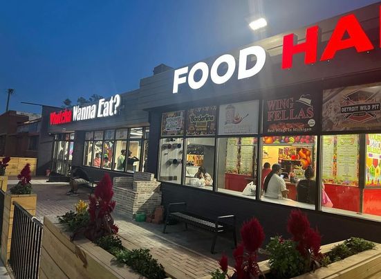 Whatcha Wanna Eat? Food Hall is designed to be a space where community members can gather and support up-and-coming restaurateurs. Each business owner at the food hall is a first-time food vendor, and each business is minority owned.
