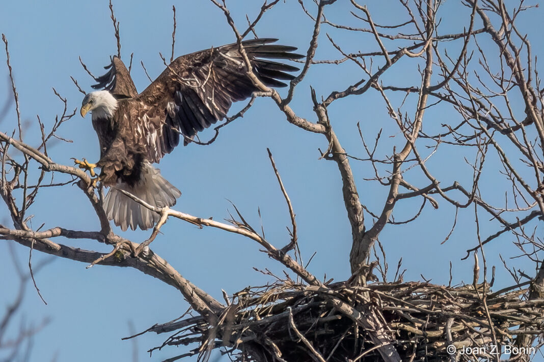 On Saturday, April 8, naturalist Lizzy Schultz and wildlife photographer Joan Bonin will lead a free guided hike at Holland Ponds from 2-3 p.m. Hikers can look forward to catching a glimpse of the two American bald eagles that made the park their home at the beginning of March.