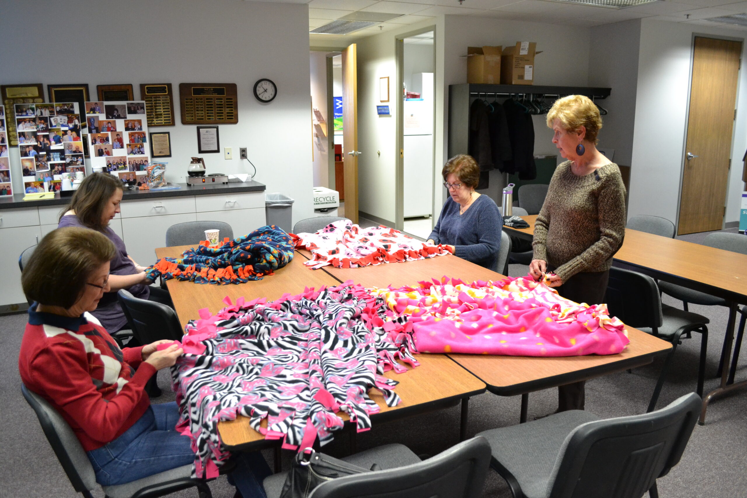 Each year, volunteers from the National Council of Jewish Women, Michigan (NCJW|MI) make 600 fleece blankets that are distributed to children in need. These blankets provide comfort to children in foster care and to those in the hospital going through difficult treatments like chemotherapy.
