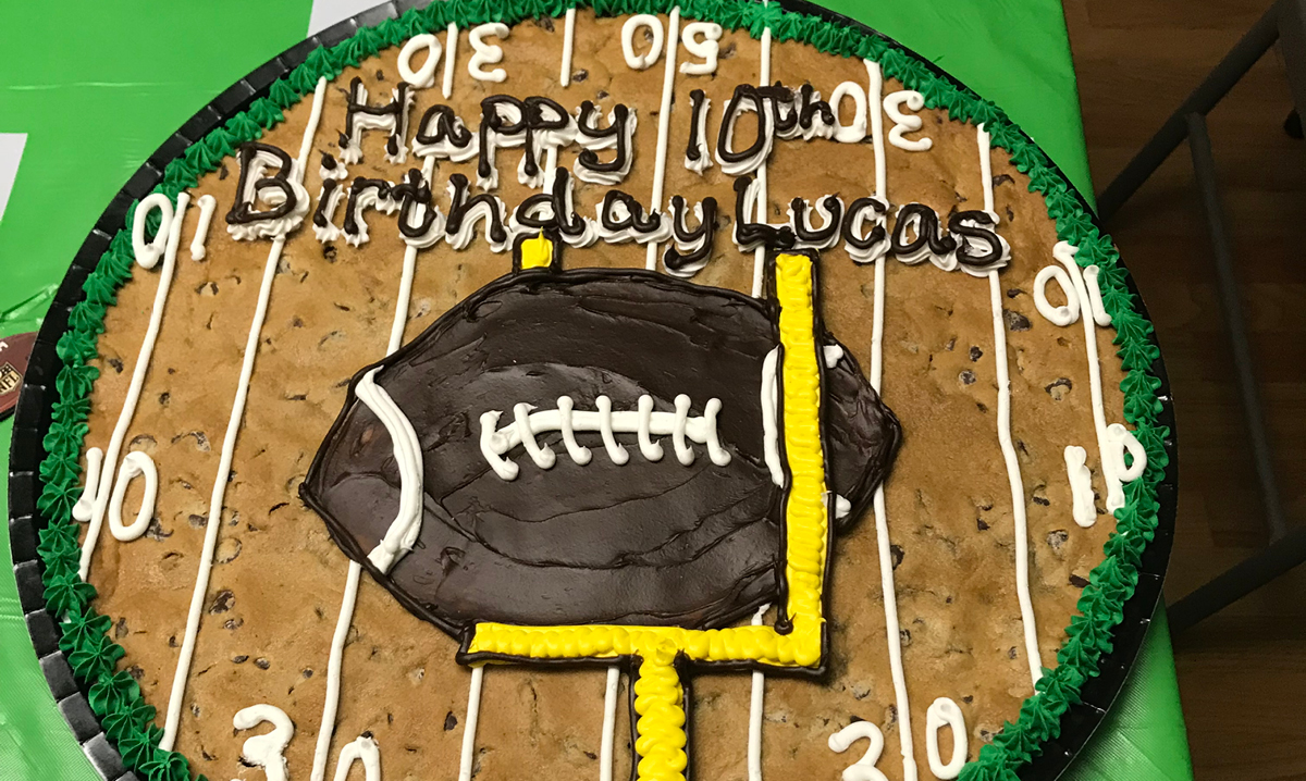 The cake was a big cookie featuring a giant football and field. The boys also received a goody bag thank you.