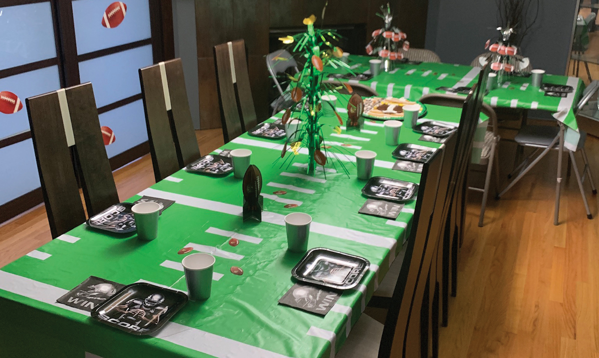“After the game, there was cake at our house for his friends and their parents and siblings,” Mitchell says. “The house was decorated with the football theme including ‘tailgate zone’ tape on the front door.”