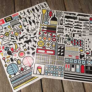 I love the stickers that come with this kit. There are flags, house numbers and doodles to use to decorate the building pieces. But there are also modern-day people to add to your city as well as graffiti-like drawings. Paper Punk does a great job of creating a product that not only appeals to a child but to their parent, too.