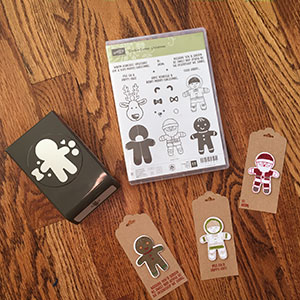 The Cookie Cutter gang is one of my favorite stamp characters available from Stampin’ Up. They’re just so fun and friendly, as you may remember from this Halloween project idea. For Christmas and the holiday season, the kids are back dressed as Santa, an eskimo, a gingerbread man, a reindeer, and even a bear. Color them in, punch them out, and add to a gift tag with a message of cheer.