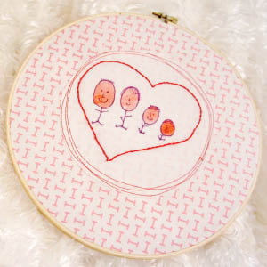 - Next, draw a heart, freehand, around your family's thumbprint lineup. This will be your embroidery guide. Use a simple chain stitch to embroider the heart. (Not in the mood to embroider? Draw your heart with a Sharpie instead.)
