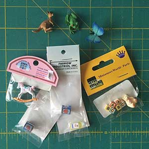 Start out by selecting the small findings you want to add to your jar. I found that dollhouse miniature accessories are the perfect size for this type of activity. Small rubber animals and insects are great, too!