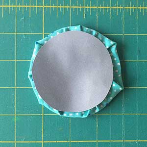 If you’re using a mason jar with a metal lid that comes in two pieces (a ring and the seal top), you’ll want to glue those pieces together. Using a piece of scrap fabric, cover the seal by wrapping it with the fabric and gluing to the back of the lid. Cut a circle from a piece of cardstock and glue on the back of the seal to hide the fabric’s raw edges.