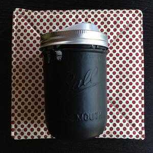 | 3. When you’ve covered the areas you want painted, remove the jar and let dry on a clean surface. I used newspaper here, but think of a material, like wax paper, that will be easily removed from the jar if paint drips and sticks to it. If you notice any wayward drips or messes, use a damp paper towel to clean it up before the paint dries too much. |