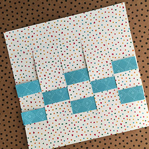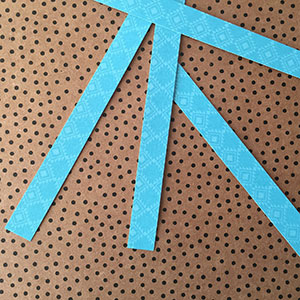 Using another color of cardstock, cut five weft pieces that are 1/2″ wide and 5″ long.