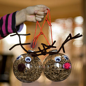 Right now is a great time to stock up on ornament blanks at your local craft store. Reading Confetti uses empty plastic bulbs to create cheery reindeer Christmas decor.